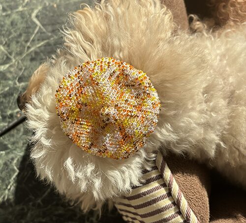 今回は、かぎ針で犬用ビーズベレー帽を編んでみました。